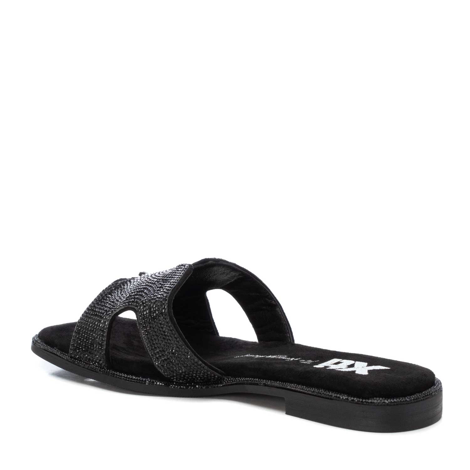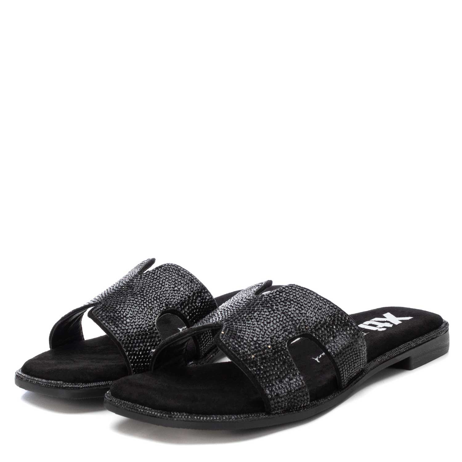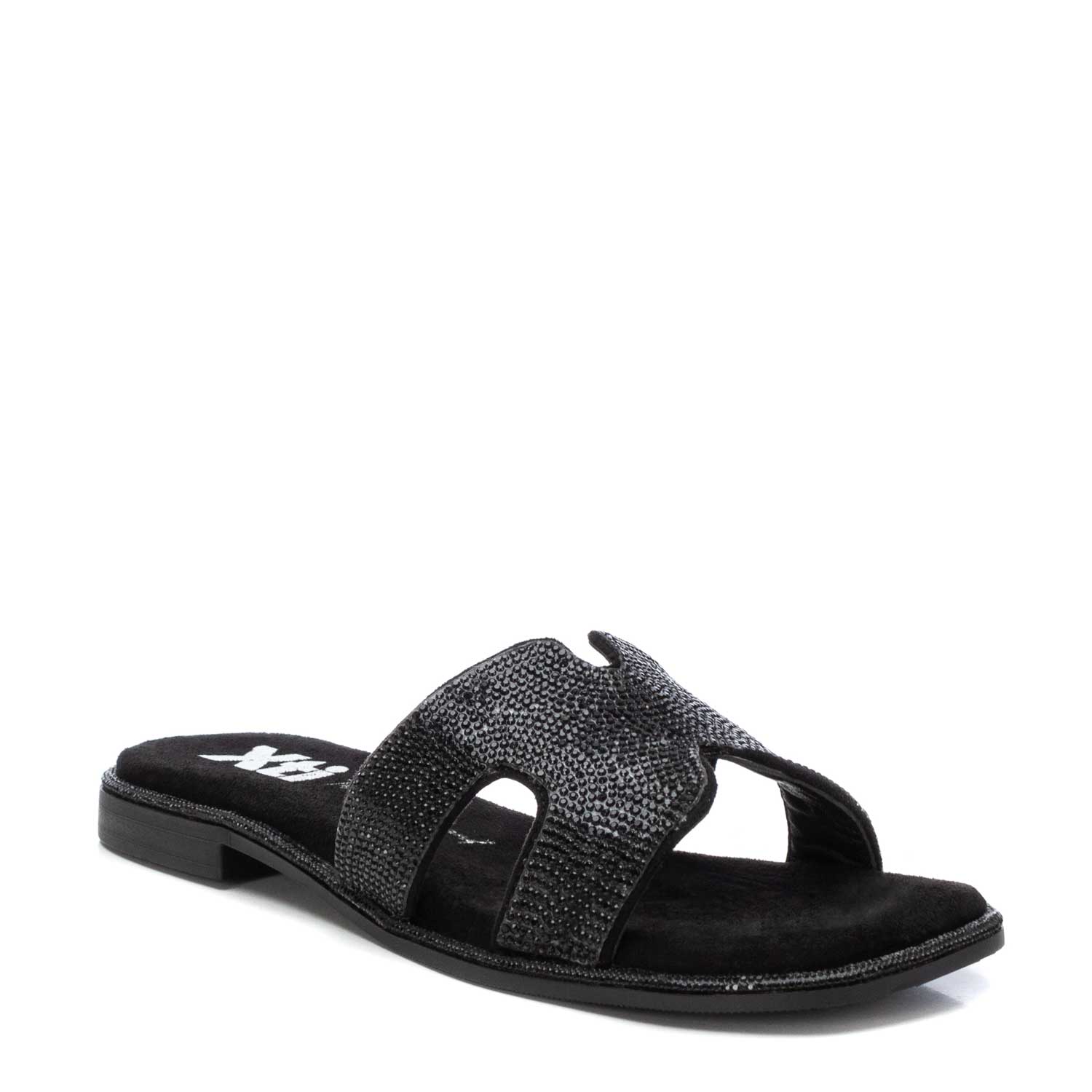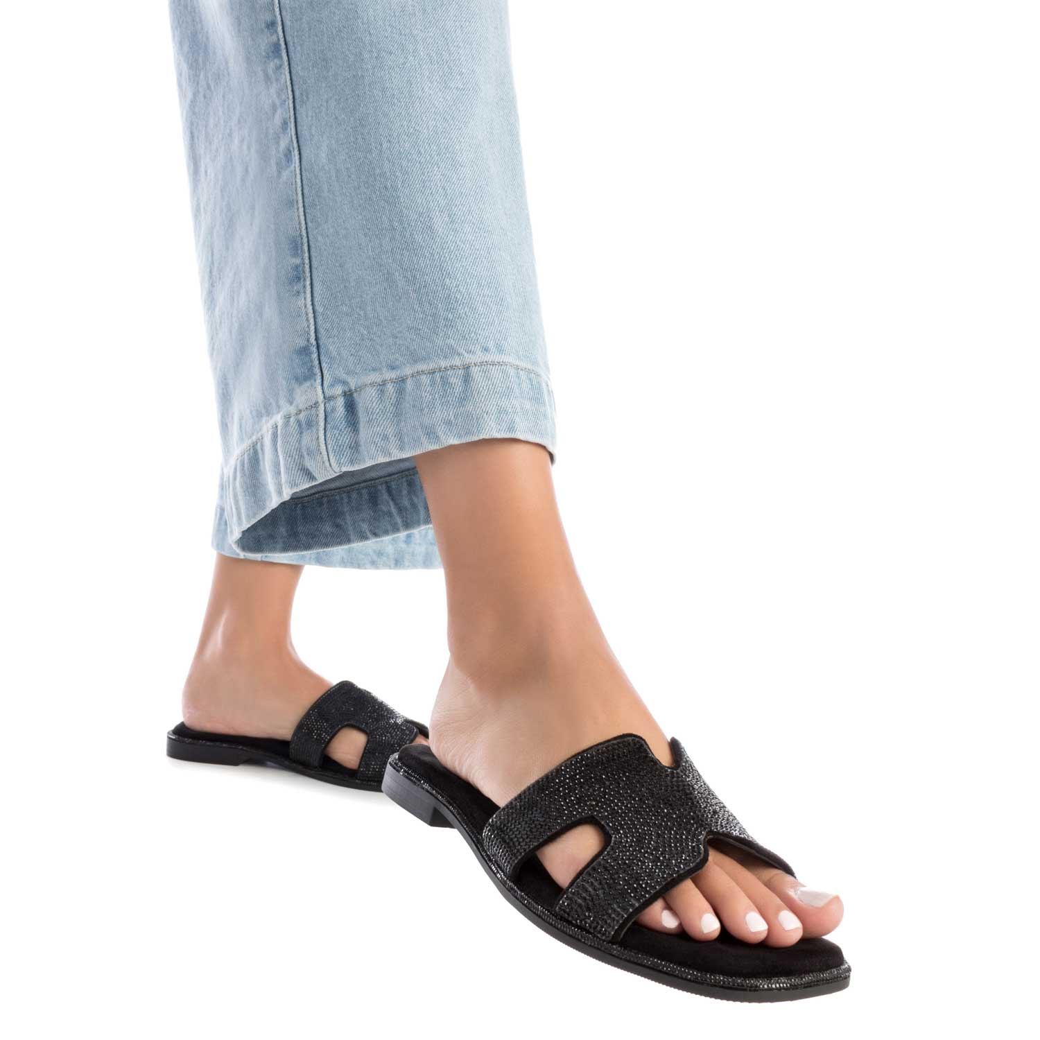 Sandalia de mujer. de la marca Xti. Fabricada en antelina con detalles de piedras de fantasía. Suela de goma antideslizante. Este modelo ha obtenido el certificado vegano por la organización mundial PETA (Organización de los derechos de los animales).