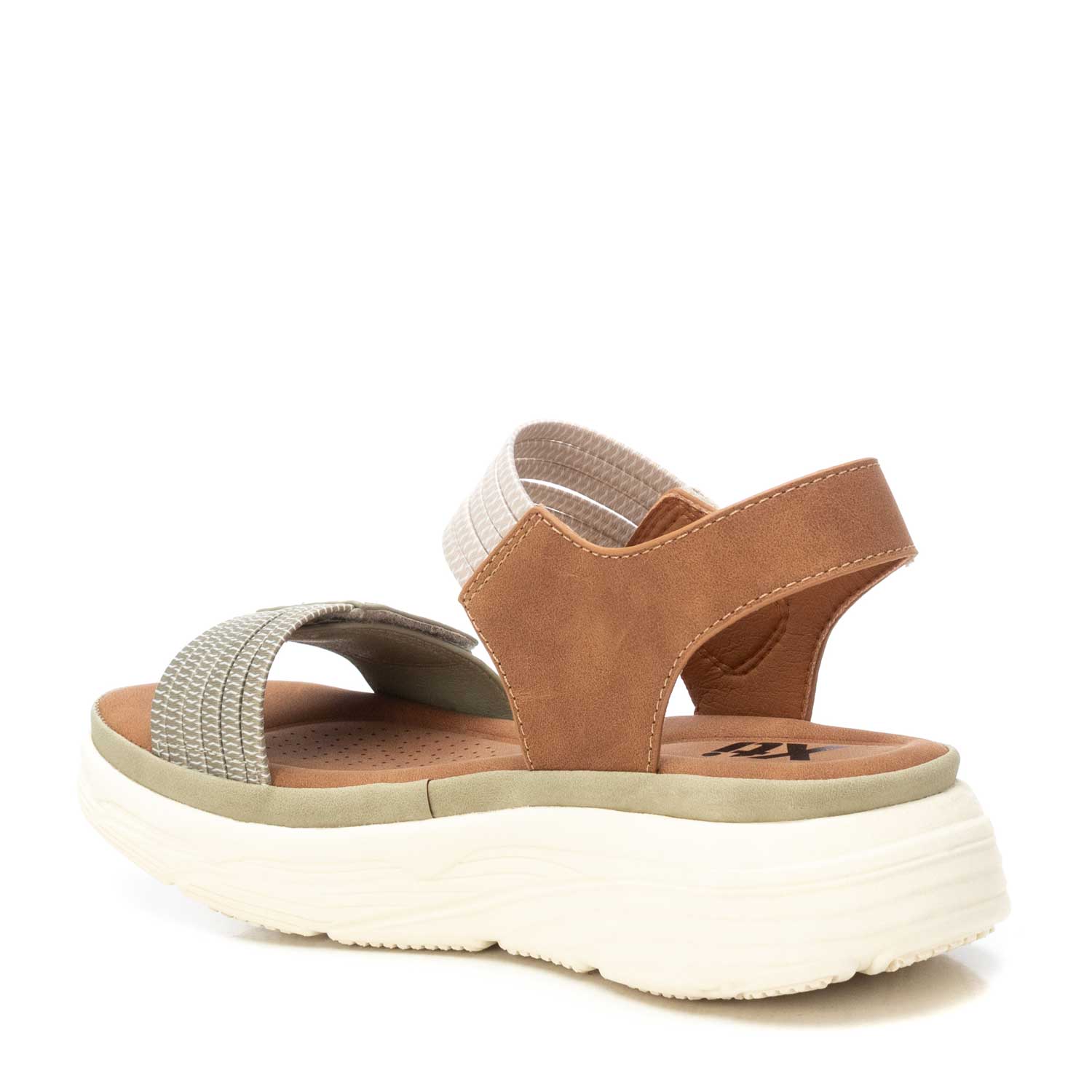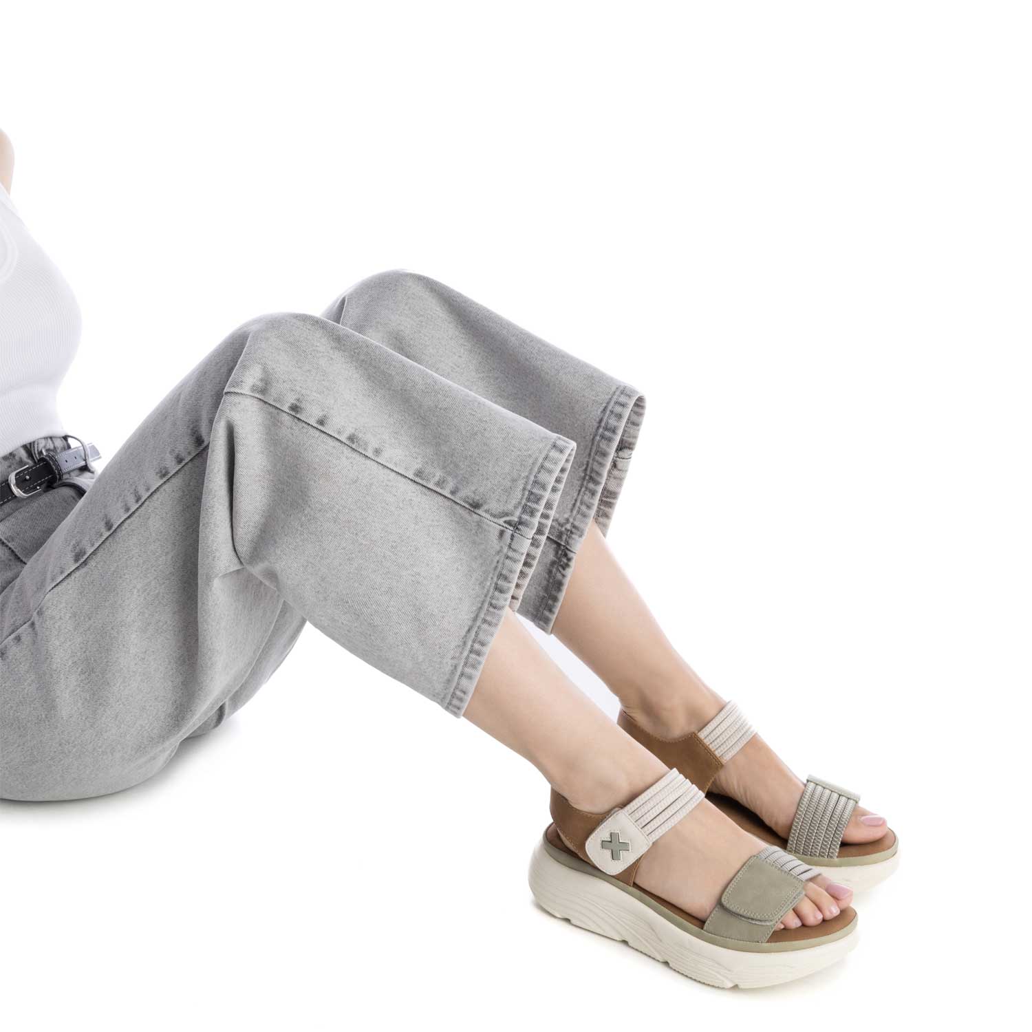 Sandalia de mujer. de la marca Xti. Fabricada en material que imita la piel combinada con tiras elásticas en el tobillo. Sujeción con cierre adhesivo. fáciles de poner y super cómodas para llevar todo el día. Combinada con bonitos colores. Suela deportiva y antideslizante. Este modelo ha obtenido el certificado vegano por la organización mundial PETA (Organización de los derechos de los animales).