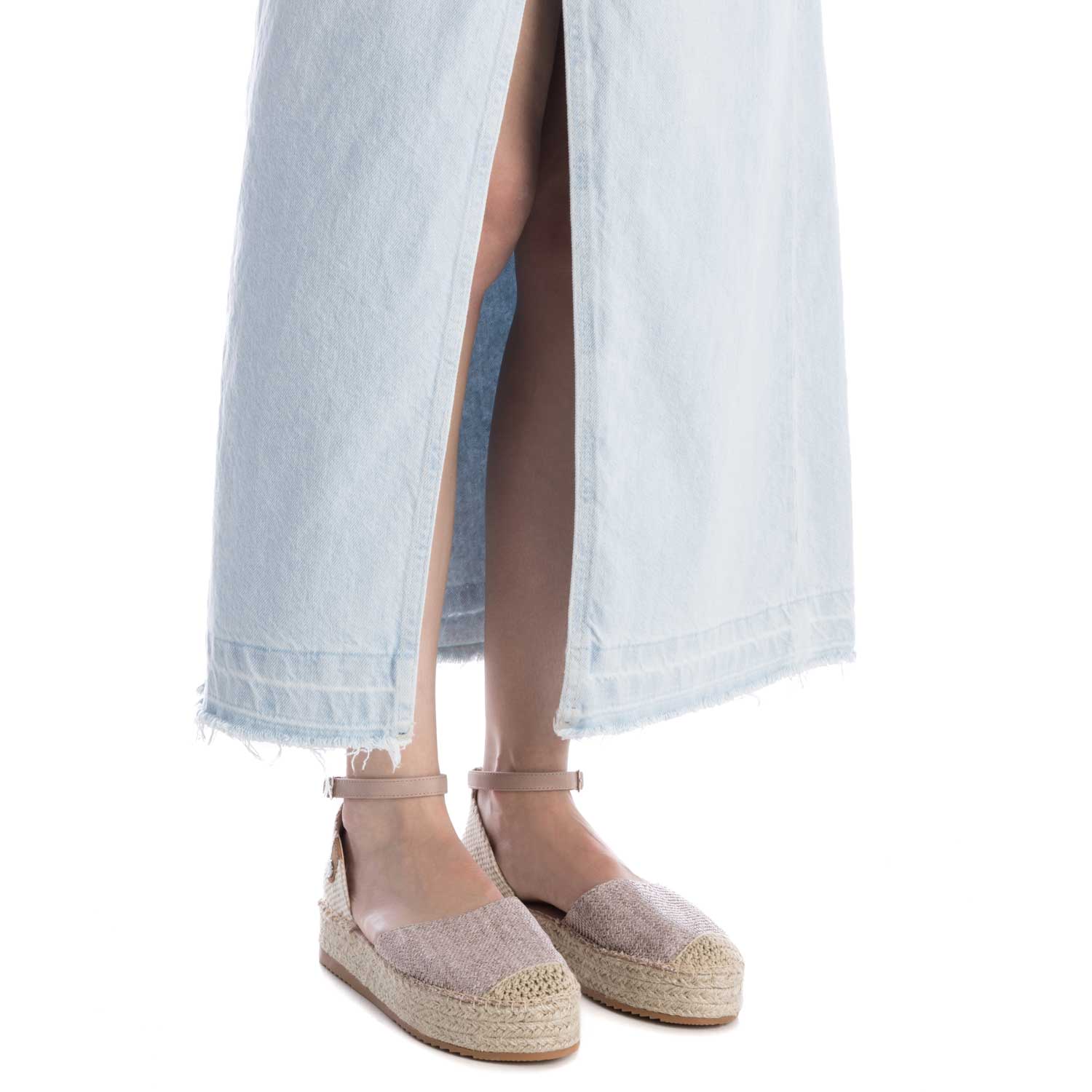 Zapato de mujer. de la marca Refresh. Fabricado en material que simula la rafia. Cierre mediante pulsera al tobillo con hebilla. Modelo estilo alpargata con talón cerrado y pulsera con hebilla para ajustar al tobillo. Piso volumen de 4 cm forrado en yute trenzado. Suela antideslizante. Este modelo ha obtenido el certificado vegano por la organización mundial PETA (Organización de los derechos de los animales).